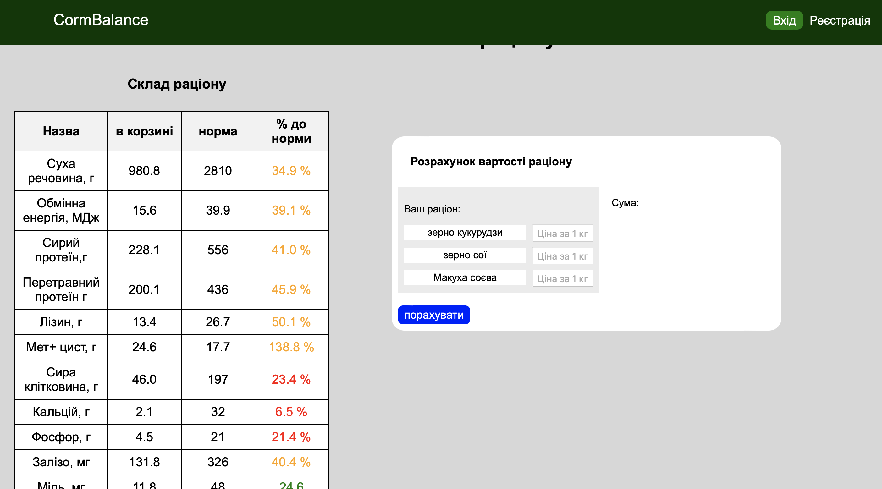 Модуль розрахунку поживності кормів та годівлі — це інноваційний інструмент для створення збалансованих раціонів для різних видів тварин. Система враховує їхній вік, продуктивність, фізіологічний стан та сезонність. За допомогою автоматичних розрахунків аграрій отримує точні дані про поживність раціону, співвідношення білків, жирів, вуглеводів, вітамінів та мінералів. Це дозволяє не тільки підвищити продуктивність тварин, але й покращити їхнє здоров’я. Програма також розраховує собівартість раціону, враховуючи актуальні ціни на корми та їхні обсяги. У результаті користувач бачить оптимальні варіанти раціонів, що поєднують економічну вигоду та збалансоване харчування.